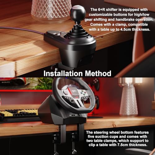 - مجموعة ملحقات المحاكاة الكاملة: تحتوي طارة دركسيون قيادة اكس بوكس بمقاس 28 سم على 10 أزرار وظيفية ولوحة دي باد و4 أزرار إضافية وذراعين لتبديل السرعات. دواسة بتقنية تأثير الهول للتحكم الثابت، مع 12 وسادة مانعة للانزلاق لتثبيت آمن بدون الحاجة إلى مسامير عند فتحها. يحتوي ذراع تبديل السرعات 6+R على أزرار قابلة للتخصيص لتبديل التروس بين العالي والمنخفض وتشغيل فرامل اليد.