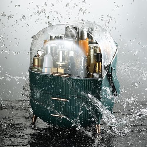 pyebe - منظم مكياج كبير بأدراج لتخزين مستحضرات التجميل وعرضها، علبة تخزين مقاومة للغبار والماء ومناسبة لسطح حوض الحمام وطاولة تسريحة غرفة النوم من بايبي، أخضر