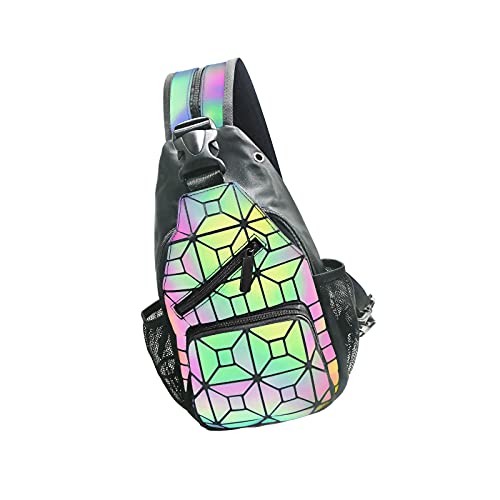 PYFK - شنطة ظهر هندسية مضيئة ثلاثية الأبعاد متغيرة الألوان حقيبة كروس عاكسة كتف عصرية للنساء والرجال من بي واي اف كيه 12.6 x 7.9 2.4 inches متعدد الالوان