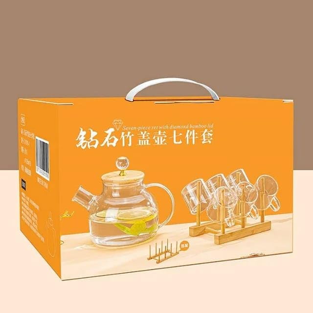 Generic - إبريق شاي حراري بسعة 1 لتر و6 أكواب بسعة 125 مل من البايركس، طقم إبريق شاي زجاجي مع غطاء من البامبو، آمن للاستخدام على الموقد لصنع الشاي المغلي والعصير والقهوة