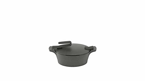 - كسرولة جرانيت مقاس 18 سم لون رمادي جرانيت مقاس 18 سم مع غطاء من بايركس - لون رمادي