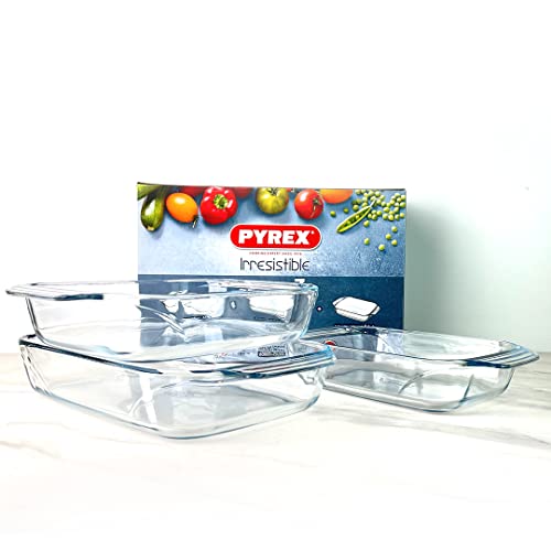 Generic - طقم أطباق كسرولة مستطيلة من بايركس، مكون من 3 قطع