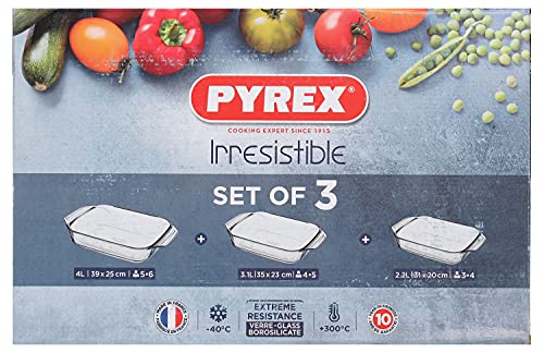 Pyrex - مجموعة من 3 صواني شواء مستطيلة من بايركس