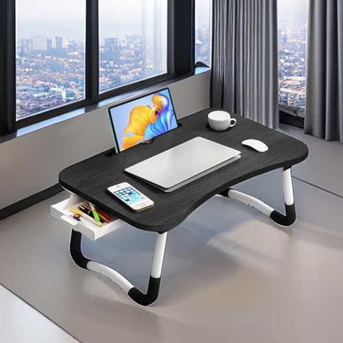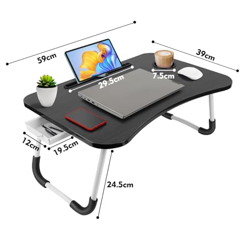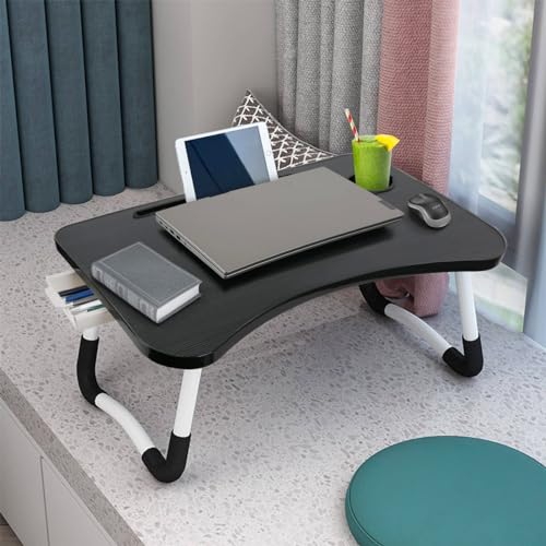 Python Fly - طاولة خشبية محمولة قابلة للطي من بايثون فلاي، مناسبة للنوت بوك والسرير والكنبة، لون أسود