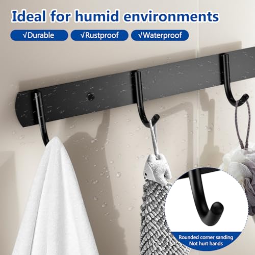 pzihao - خطافات مطبخ من بزيهاو، خطافات معاطف، خطافات حائط، خطافات معاطف، خطافات معاطف، اسود، رف معطف من الستانلس ستيل مع 4 خطافات لتعليق المعاطف والقبعات وشماعات الجاكيتات وخطافات المعاطف المعدنية