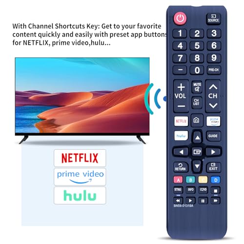 - 【 الوحدات المتوافقة】جهاز تحكم عن بعد شامل يتوافق مع جميع تلفزيونات سامسونج الذكية من فئات LCD وLED وSUHD وUHD وHDTV و3D، وطراز BN59-01199F، BN59-01315B، BN59-01315J، BN59-01315N، N59-01315A، BN59-01315D، BN59-01178W، BN59-01315A، BN59-01315B، BN59-01315J، BN59-01315D، BN59-01315N، BN59-01315E، BN59-01315M، BN59-01259E، BN59-01259B، BN59-01260A، BN59-01241A، BN59-01312A، BN59-01199F، BN59-01301A، AA59-00594A، AA59-00666A، AA59-00741A، AA59-00784C، AA59-00666A، BN59-01265A، BN59-01259D، BN59-01266A، BN59-01242A، BN59-01292A، BN59-01178W وغيرها.