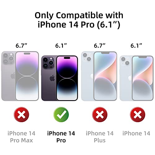 - فقط لموبايل ايفون 14 برو (6.1 بوصة). يرجى التحقق من موديل الهاتف قبل الشراء. فتحة الهاتف المحمول دقيقة والمظهر واضح للغاية، مما لا يؤثر على الجمال الأصلي للجوال.