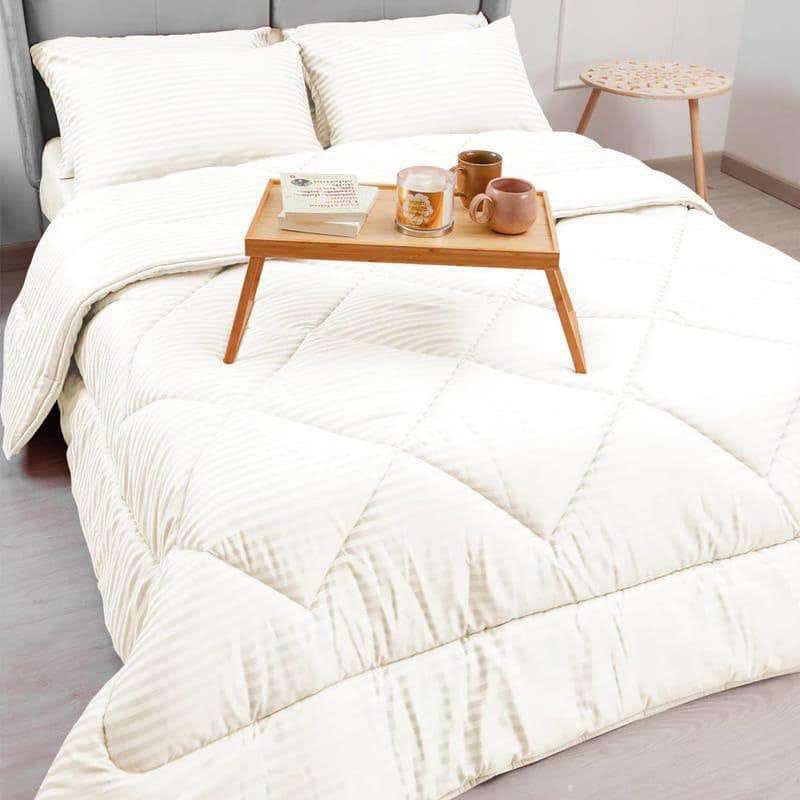 CUBD - Q BED لحاف سترايب 3 قطع – لحاف 240×270 سم + 2 كيس خدادية 50×70 (اوف وايت)