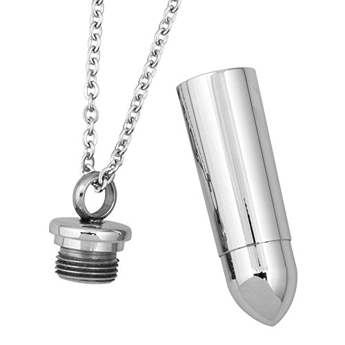 Q&Locket - عقد ورماد بتصميم رصاصة مصقول من الستانلس ستيل، للرجال