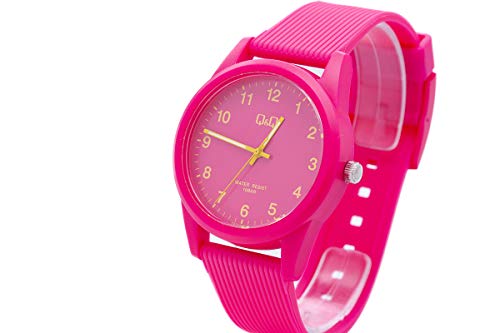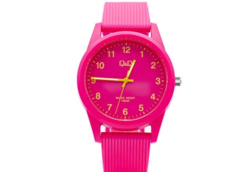 Q&Q - ساعة بسوار مطاطي من كيو اند لون فوشيا موديل VS12J009Y زهري تناظري