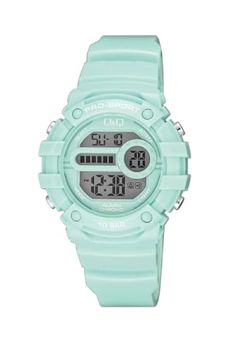Citizen - Q&Q ساعة رياضية رقمية كرونوغراف للنساء بسوار من الراتنج، اخضر