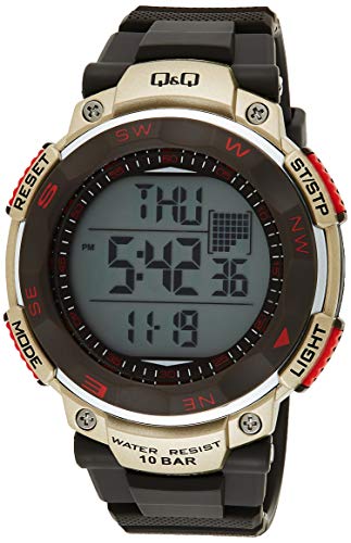 Q&Q - ساعة بمينا رقمية وسوار من السيليكون للرجال كيو اند موديل [M124J004Y] ديجيتال رمادي بسوار بني