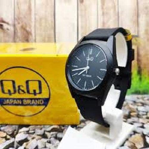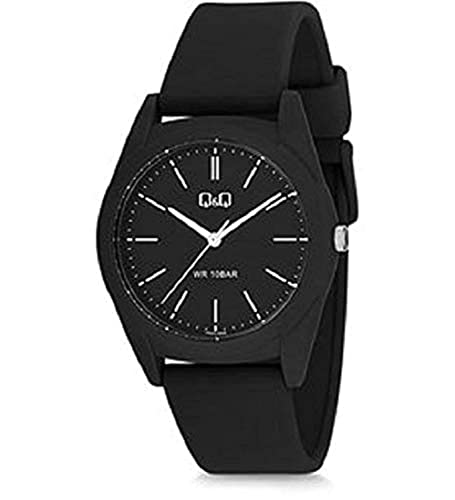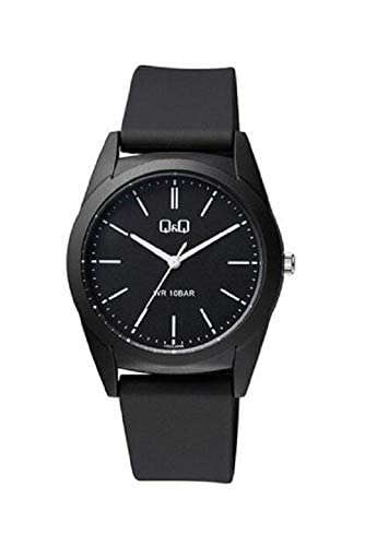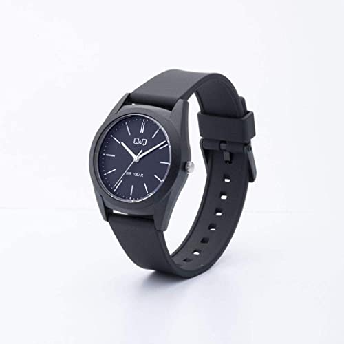 Q&Q SmileSolar - ساعة يد بحركة كوارتز وعرض انالوج مع سوار اسود مصنوع من الراتنج من كيو اند كيو، موديل VS22J006Y, أسود، الرجال