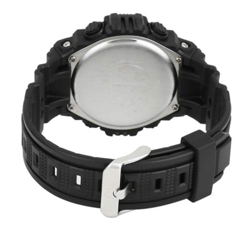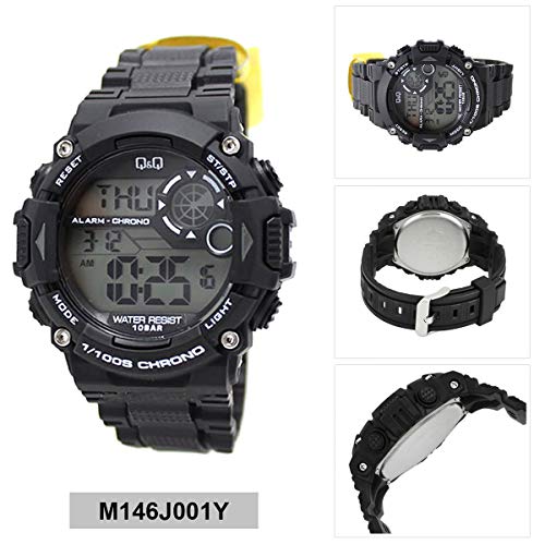 Q&Q WATCHES - من كيو اند كبو ساعة كرونوغراف رياضية رقمية كبيرة الحجم للرجال بسوار من الراتنج و5 منبهات، بمينا رمادي، بسوار أسود
