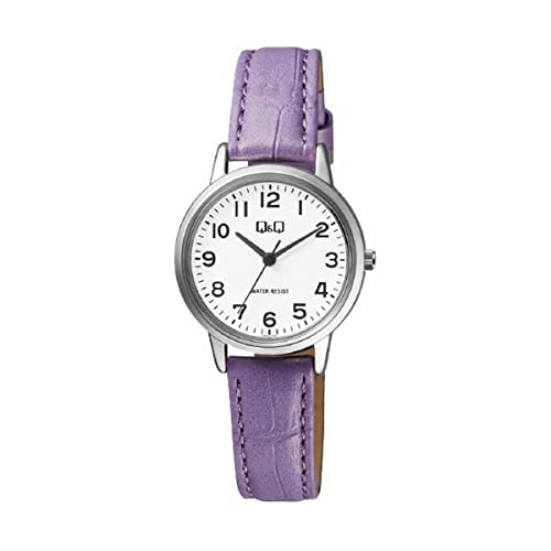 Q&Q - ساعة بسوار جلدي لون ارجواني Q925J334Y من كيو اند أرجواني للنساء تناظري