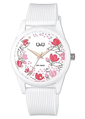 Q&Q - ساعة كيو اند - موديل VS12J013Y تناظري بمينا متعدد الألوان بسوار أبيض