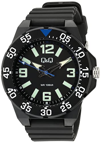 Q&Q - كيو اند كيو VS24J002Y، تناظري، بمينا أسود، بسوار أسود