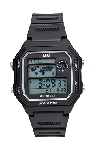 Q&Q - ساعة ديجيتال بمينا بيضاء للرجال من كيو اند كيو-M196J001Y, أسود