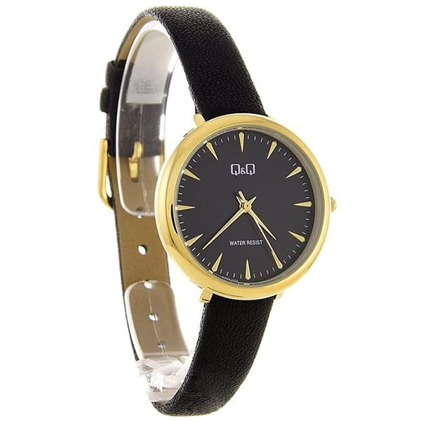 Q&Q - ساعة للنساء من كيو اند موديل QC35J102Y، انالوج، بمينا أسود، بسوار Q&Q