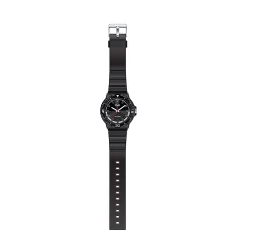 Q&Q - ساعة بسوار من الراتنج للرجال كيو اند - موديل V02A-004VY أسود انالوج