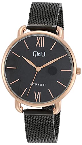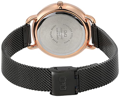 Q&Q - ساعة بسوار من كيو اند مصنوع الستانلس ستيل اسود موديل QC27J402Y أسود انالوج للنساء