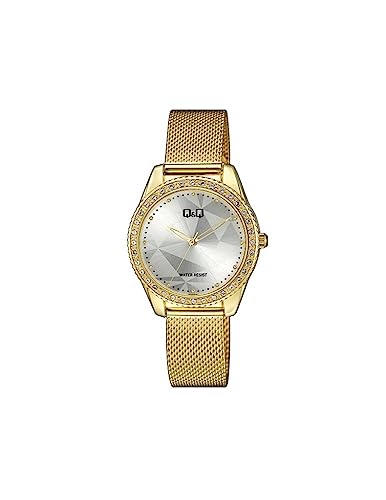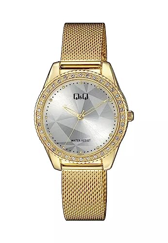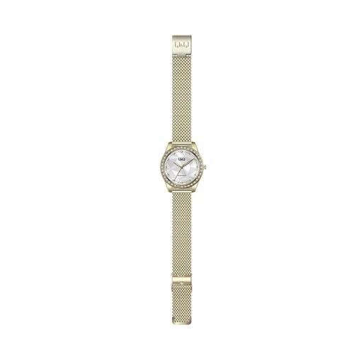 Q&Q - ساعة QZ59J081Y بسوار ستانلس ستيل شبكي للنساء من كيو اند ذهبي انالوج