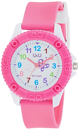 Q&Q - ساعة بحركة كوارتز وعرض انالوج وسوار مطاطي بلون بينك للجنسين من كيو اند كيو، موديل VQ96J025Y