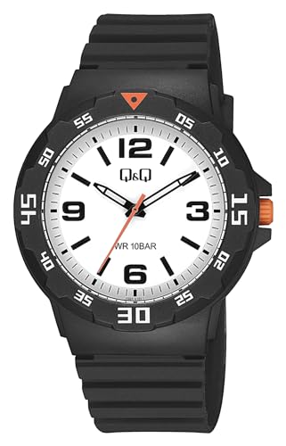 Q&Q - ساعة رياضية يابانية انيقة للرجال من Q&Q - موديل V02A-018VY بمينا أسود بسوار