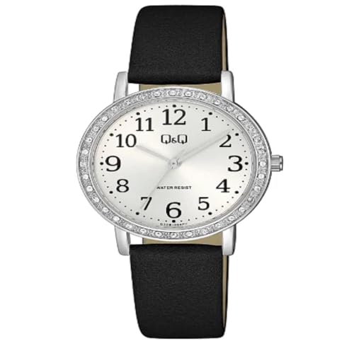 Q&Q WATCHES - ساعة انالوج بعقارب وسوار جلدي للنساء من كيو اند كيو، اسود، Q32B-004PY