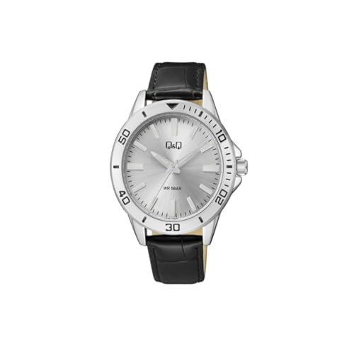 Q&Q WATCHES - ساعة كوارتز انالوج بعقارب وسوار جلد للرجال من كيو اند كيو، اسود، Q28b-005py