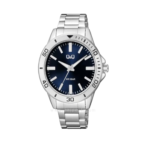 Q&Q WATCHES - ساعة انالوج بحركة كوارتز وسوار ستانلس ستيل للرجال من كيو اند لون فضي Q28b-003py