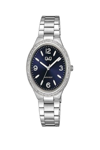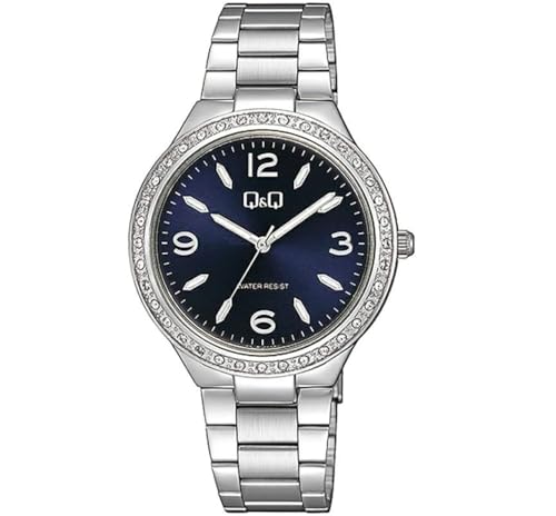 Q&Q WATCHES - ساعة انالوج بحركة كوارتز وسوار ستانلس ستيل للنساء من كيو اند لون فضي موديل Q34B-003PY