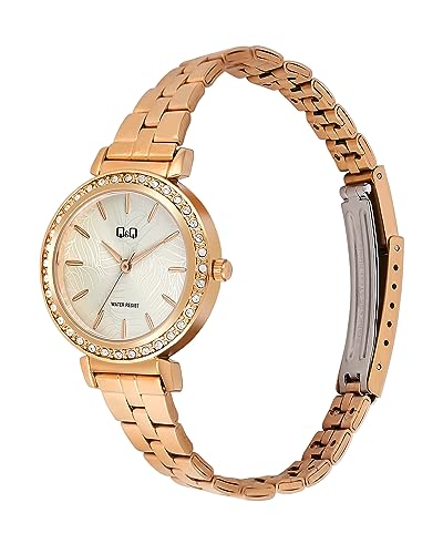 Q&Q WATCHES - Q&Q ساعة انالوج بمينا ذهبي وردي للنساء - QZ89J011Y