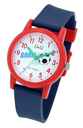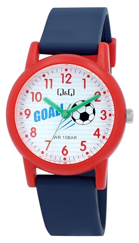 Q&Q WATCHES - Q&Q ساعة اطفال بسوار راتنج ازرق داكن واطار احمر - V23A-015VY، رقمي تناظري