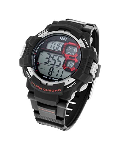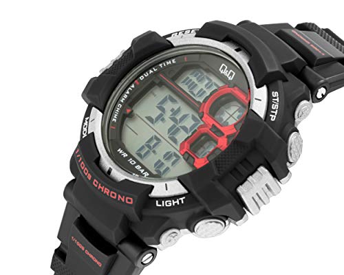Q&Q - Q&Q ساعة رياضية رقمية بسوار من الراتنج للرجال - M143J010Y بمينا أسود