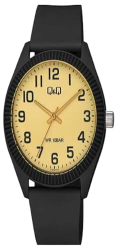 Q&Q - Q&Q ساعة للرجال بسوار راتنج اسود ومينا ذهبي - V12A-011VY، رقمي تناظري