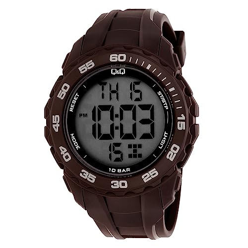 Q&Q WATCHES - Q&Q ساعة كرونوغراف رياضية رقمية كبيرة الحجم للرجال بسوار من الراتنج اسود