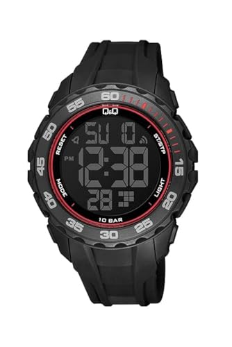 Q&Q WATCHES - Q&Q ساعة كرونوغراف رياضية رقمية كبيرة الحجم للرجال بسوار من الراتنج، اسود/احمر 2