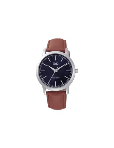 Q&Q WATCHES - Q&Q ساعة تعمل بالبطارية مع سوار من الجلد، لون بني، موديل Q59B-004PY، رقمي تناظري، الرجال