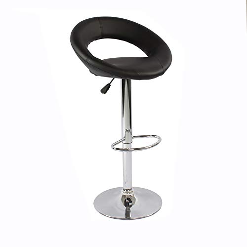 QA - كرسي بار دوار قابل للتعديل من جلد البولي يوريثين مع مسند للقدمين للمطبخ من QA، طاولة بار (أسود-A)