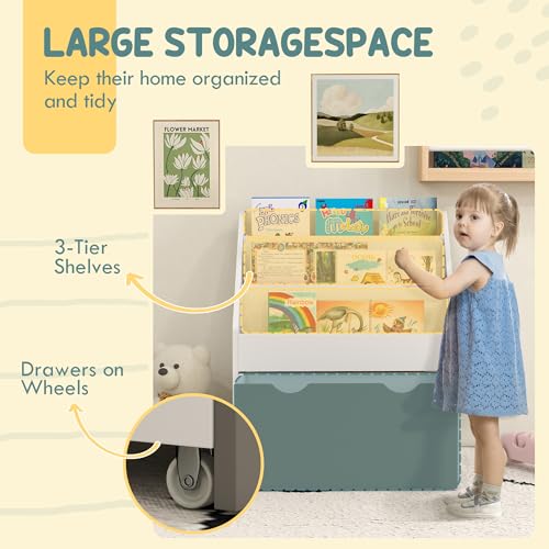 - حل تخزين واسع: تتميز مكتبة الأطفال هذه بثلاثة أرفف ودرج سفلي كبير، مما يوفر مساحةً كبيرةً للكتب والألعاب.