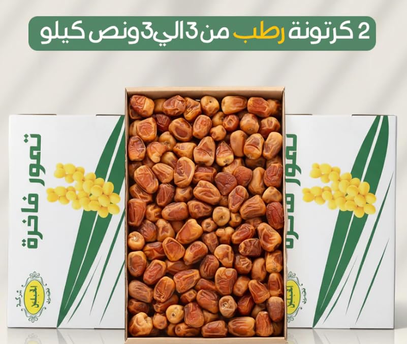 - كمية كبيرة: مجموعة من 2 صندوق تحتوي على 3-3.5 كجم من التمور الفاخرة، مما يوفر قيمة ممتازة ويضمن لك الحصول على الكثير لمشاركته أو الاستمتاع به بمرور الوقت.
