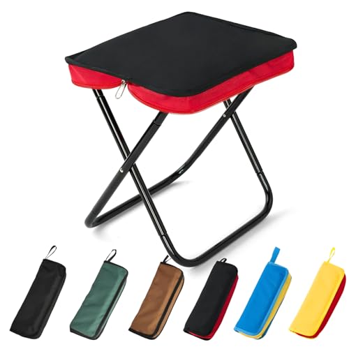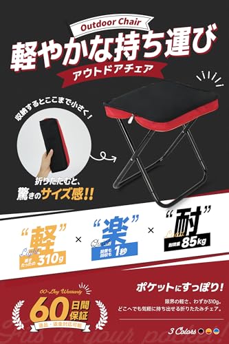 Qboo - كرسي قابل للطي للاستخدام الخارجي والتخييم صغير الحجم من كيو بو، أسود وأحمر