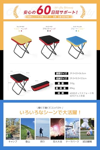 - مريح وخفيف، النوع: تزن فقط (310 جم)، وهي أخف من زجاجة المياه. الإطار مصنوع من مادة الألومنيوم 6013، وهي خفيفة الوزن ولكنها بسعة تحميل (85 كجم). يأتي الكرسي بشنطة تخزين مدمجة، ومقبض، مما يسهل حمله، كما أنه مضغوط ومريح للاستخدام مثل المظلة القابلة للطي.