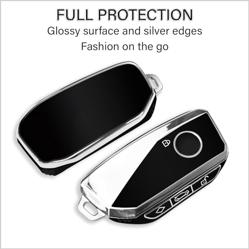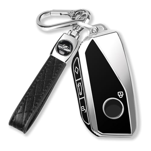 QBUC - كيو بي يو سي غطاء حماية لمفتاح سيارة بي ام دبليو مع سلسلة مفاتيح من البولي يوريثين الحراري الناعم بحواف فضية متوافقة مع 2023 2024 بي ام دبليو 7 سيريز 740 760i I5 I7 IX X1 X5 X6 X7 X7 اكس ام (اسود)