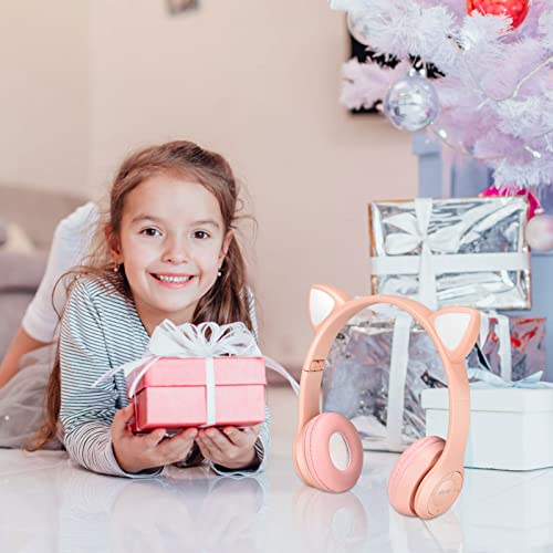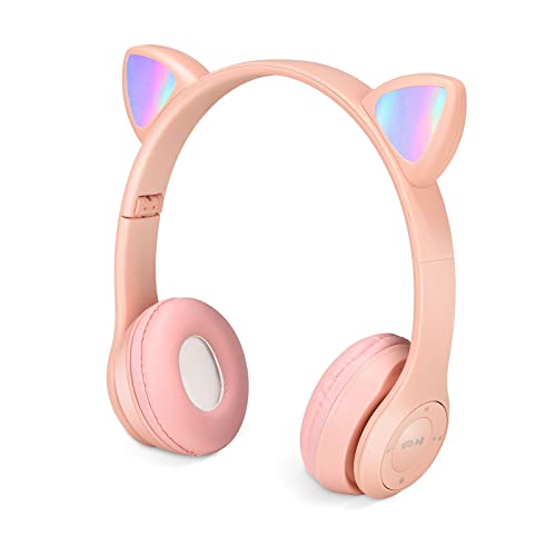 QCXWCJWD - سماعات للرأس بلوتوث لاسلكية للأطفال مع ميكروفون مع أذن قطة، سماعات قابلة للطي للأطفال للمدرسة والسفر من QCXWCJWD، لون وردي