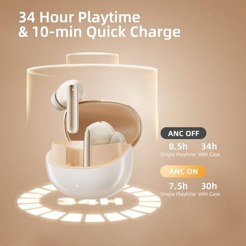 - [34 ساعة من وقت التشغيل الإجمالي] توفر سماعات الأذن 7.5 ساعات من وقت الاستماع لكل شحنة، وثلاث عمليات إعادة شحن عبر علبة الشحن تزيد من وقت الاستماع لمدة تصل إلى 34 ساعة. تمنحك صوتًا رائعًا بدقة HD، واستماع أكثر متانة، وكل ذلك يحدث من الصباح حتى الليل.