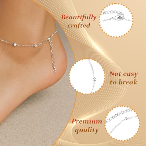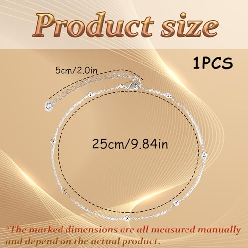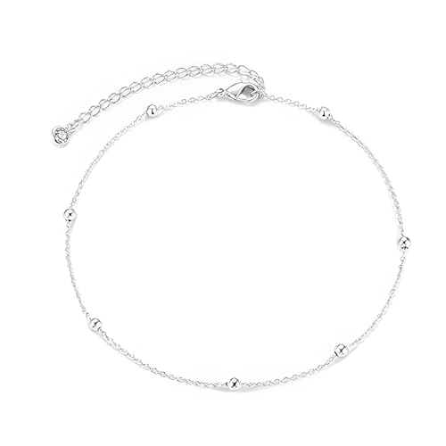 QhgPnt - اساور كاحل للنساء من كيو اتش جي بي ان تي، خلخال فضي للنساء، خلخال للنساء من الفضة الاسترلينية، خلخال للنساء والفتيات، اساور قابلة للتكديس لحفلات الزفاف، مقاس M، معدن، لا