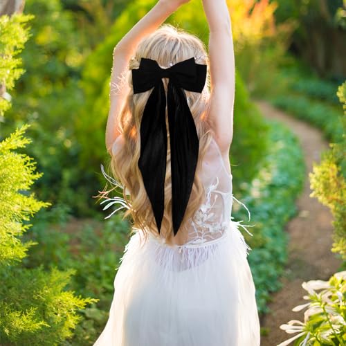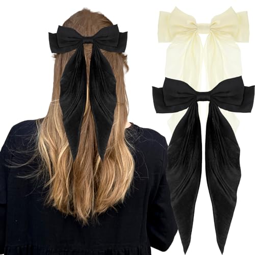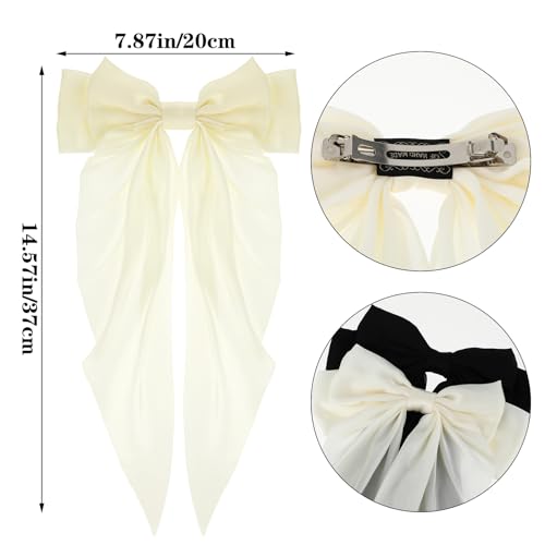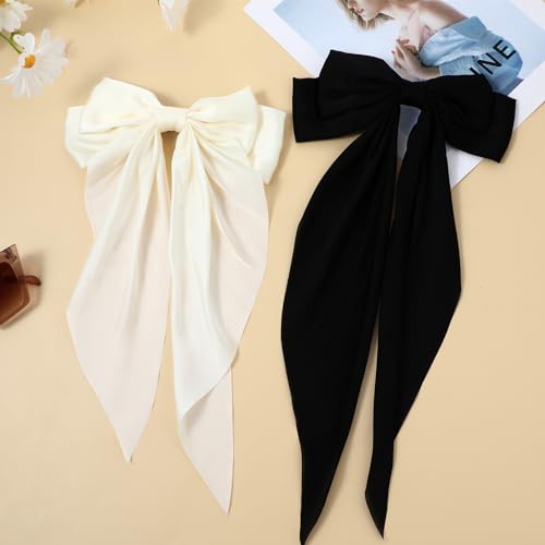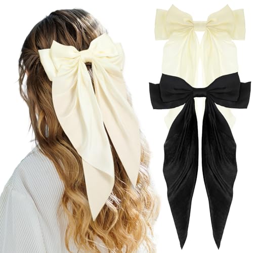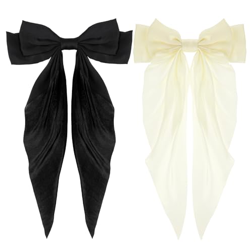 Qianyu - مشابك شعر من الساتان الحريري مكونة من قطعتين من كيانيو، مشابك شعر كبيرة ذيل طويل على شكل فيونكة، مشابك شعر بشراشيب معدنية، حامل ذيل الحصان، أكسسوارات شعر مخلبية جمالية للنساء والفتيات
