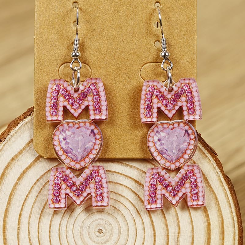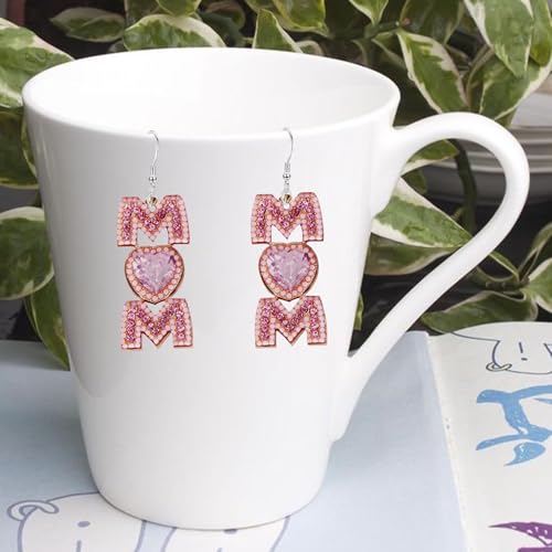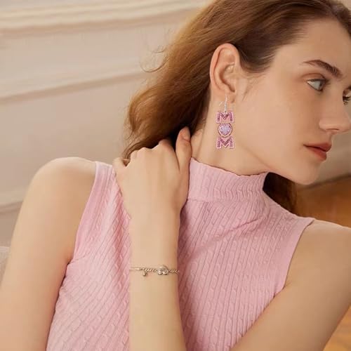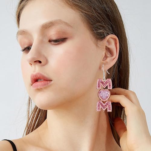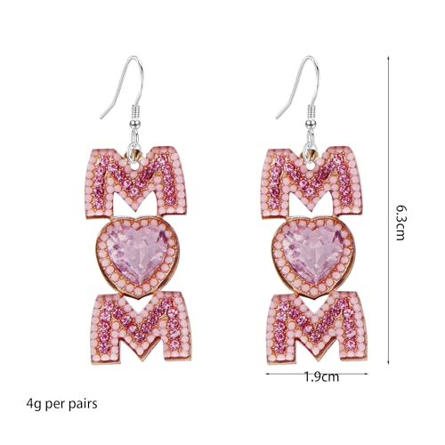 QIAOLEHUI - Cute MAMA Letter Dangling Earrings Long Statement Rhinestone Dangle Earrings Jewelry Fun Mother Day for Mom